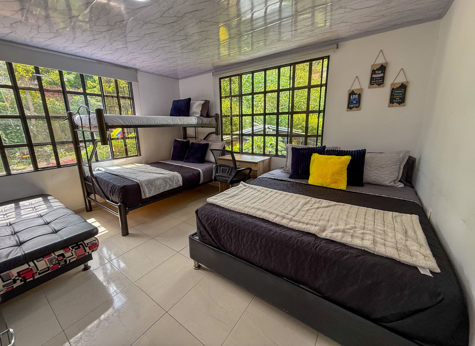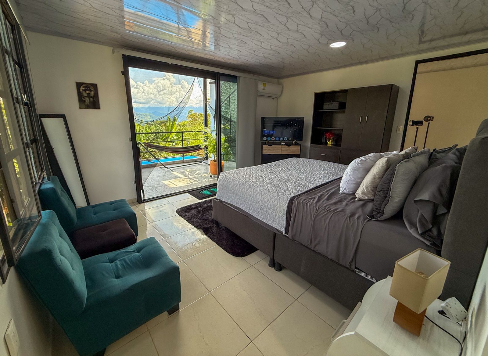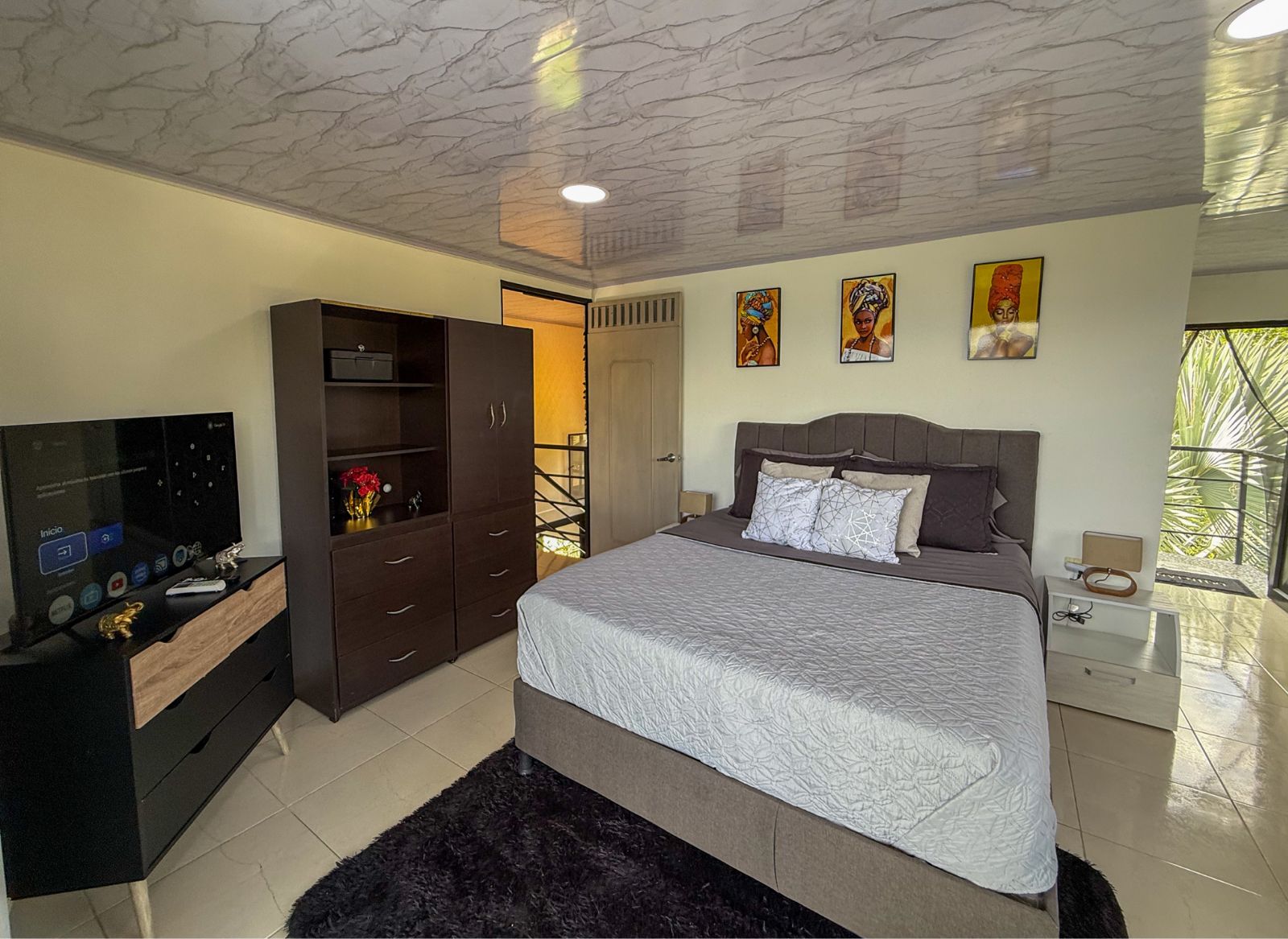 La alcoba principal y los espacios interiores combinan diseño contemporáneo, amplitud y detalles cuidadosamente seleccionados para garantizar descanso, privacidad y una sensación de hogar en plena naturaleza.